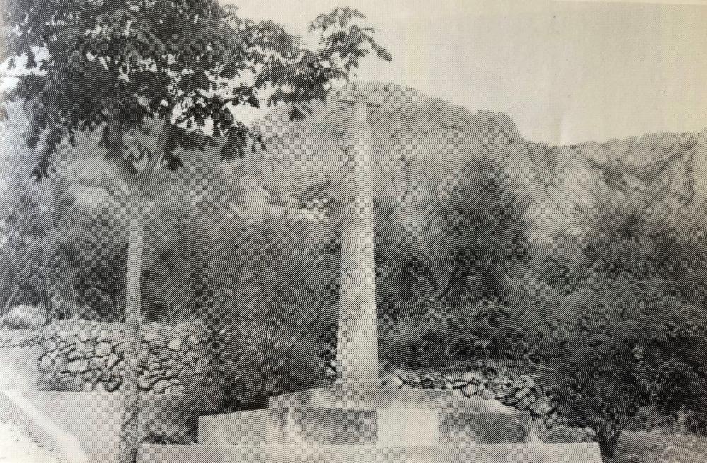 Fue inaugurada en el año 1868 y constaba de una columna de unos tres metros de altura, coronada por una cruz con el escudo papal y la fecha de 1223. Posteriormente, en 1959, se hizo una remodelación en la que se añadió una base escalonada. En el año 2002, se restauró, desplazandola unos metros hasta su actual ubicación.